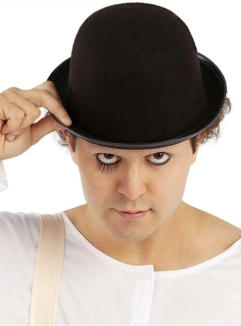 Este bombín de la Naranja Mecánica de color negro es uno de los símbolos más distintivos de los protagonistas de la película. Recuerda maquillar tus ojos y ponerte tu mono blanco para sembrar el caos igual que hacen los protagonistas de la película.