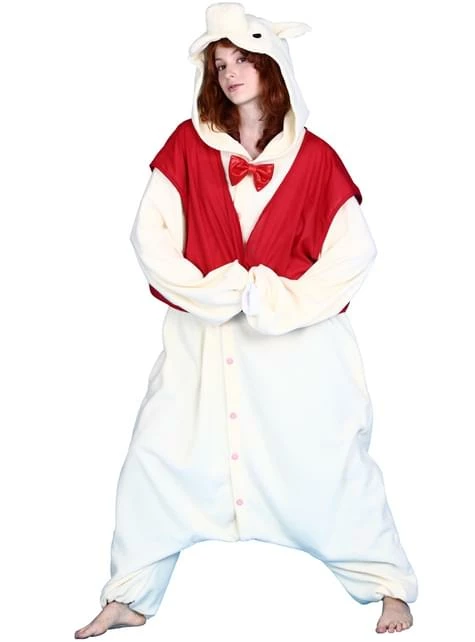 Este adorable disfraz de cerdito incluye un mono blanco con un chaleco rojo y una pajarita roja cosida al mono.