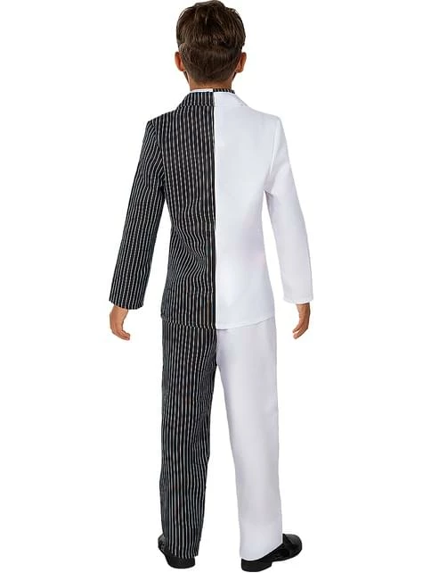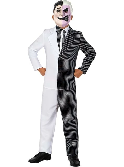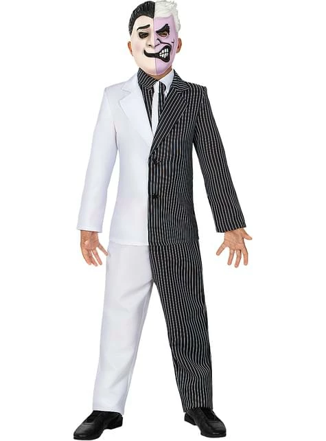 Incluye: Chaqueta con camisa y corbata incorporada, pantalón, máscara y moneda