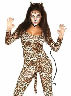 Este sensual disfraz de tigresa del oriente incluye un mono con estampado felino y una diadema con orejas.