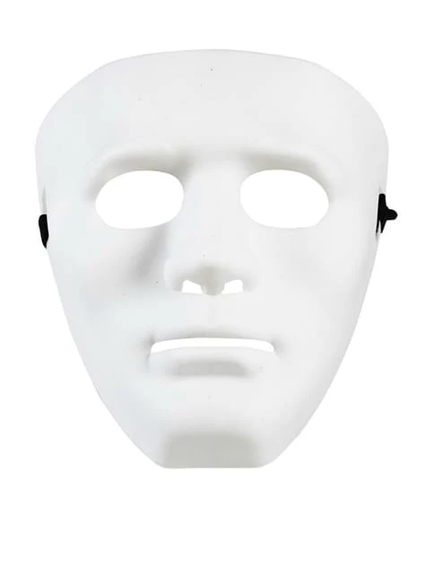 Incluye una máscara blanca básica ideal para que no te reconozcan.