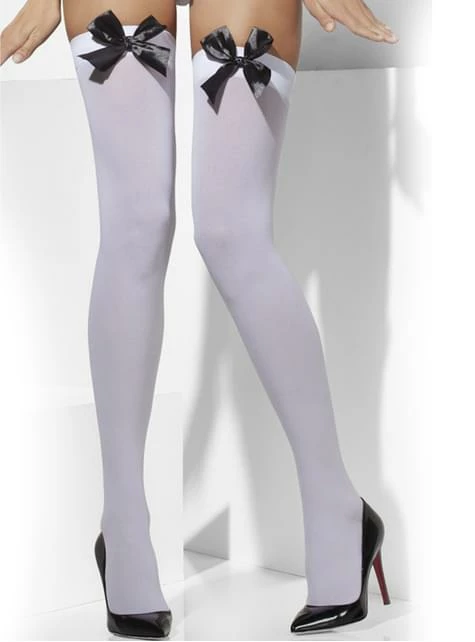 Completa tu disfraz y dale un toque sexy con estas medias blancas con lazos negros.