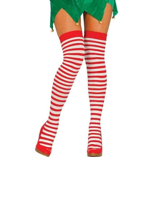 Incluye un par de medias largas con detalles de rayas color rojo y blanco.