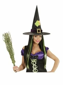 Tu melena será la envidia del aquelarre con esta peluca de bruja con mechas verdes.