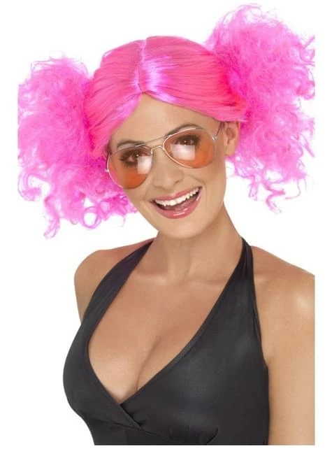 Incluye una peluca rosa de los años 80 con dos coletas una a cada lado.