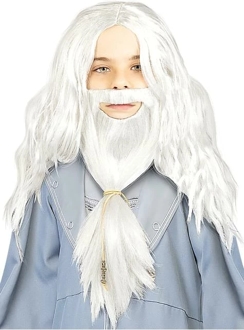Si Dumbledore es el mago favorito de tu pequeño y quieres completar su disfraz de Dumbledore para la fiesta de disfraces, no puedes olvidarte de la larga barba y cabellera blancas tan caraterísticas de este personaje.