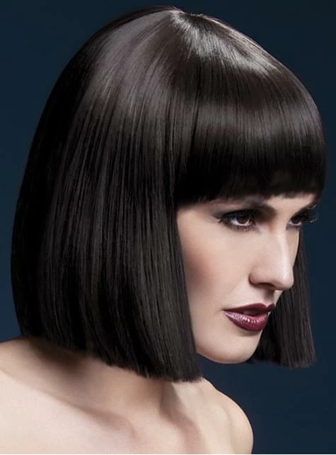Incluye una peluca corte bob lisa, 30 cm. con flequillo recto de color castaño.
