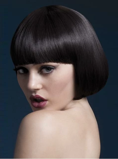 Incluye una peluca corte bob lisa, 25 cm. con flequillo recto de color castaño.