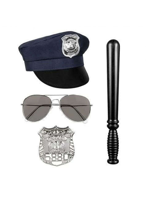 Incluye: Gorra, gafas, insignia y porra de 33 cm