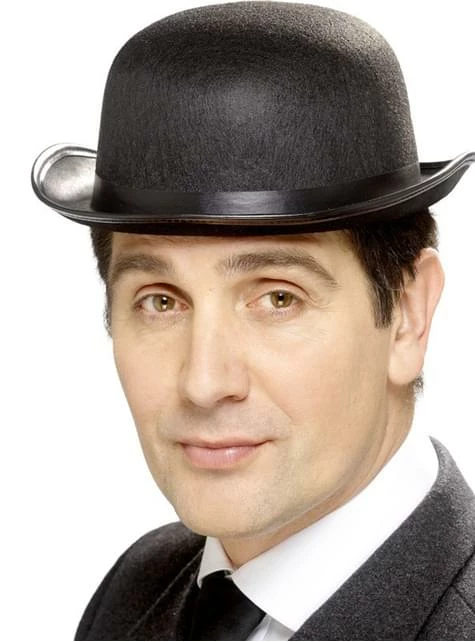 Incluye un sombrero negro de tipo bombín con una banda negra, famoso hacia finales del siglo XIX.