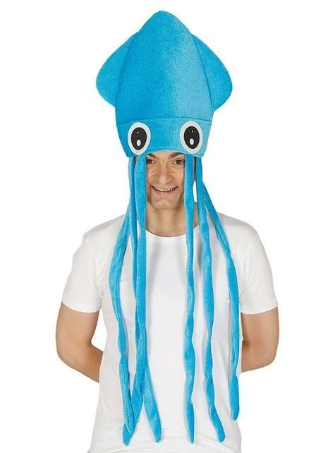 Incluye un divertido sombrero con forma de pulpo, de color azul y con tentáculos largos.