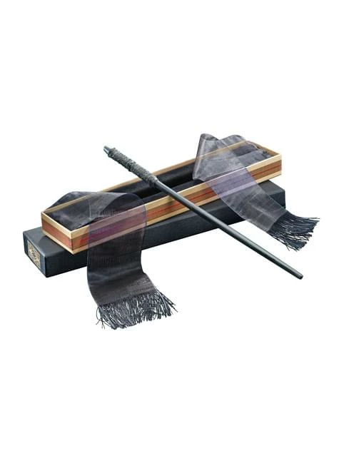 Incluye varita de 36 cm aproximadamente, fabricada en resina. Presentada en su estuche de coleccionista de la tienda Ollivanders.